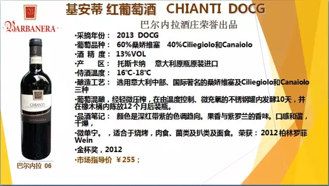 1、桑娇维塞:此品种种植区域遍及整个意大利,具有多个别名。桑娇维塞是托斯卡纳产区酿造国际著名的超级托斯卡纳、基安蒂和布鲁内罗*红(Brunello di Montalcino)的主要葡萄品种。